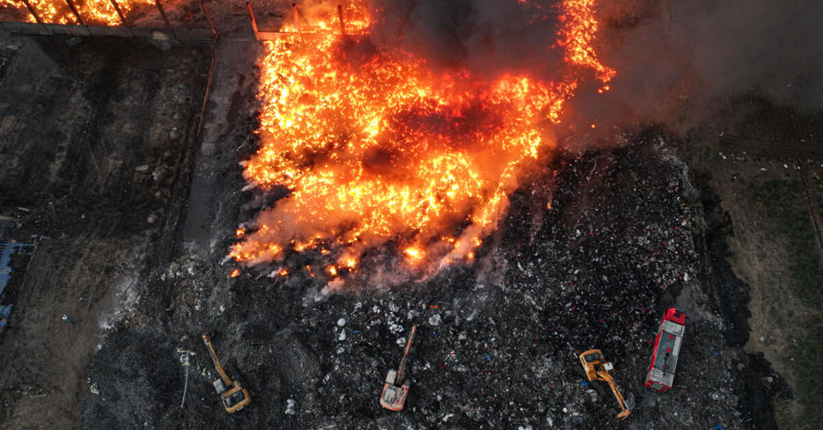 Küçükdikili Mahallesi’ndeki geri dönüşüm fabrikasında, atık malzemelerin bulunduğu alanda henüz belirlenemeyen nedenle yangın çıktı.