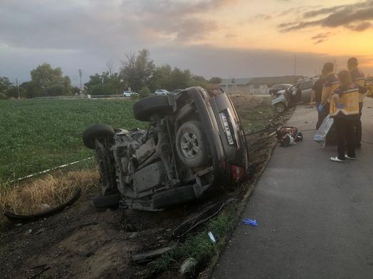 Çarpışmanın etkisiyle her iki araç da yol kenarındaki otluk alana savrulurken, takla atarak yan duran otomobil demir yığını haline dönüştü.