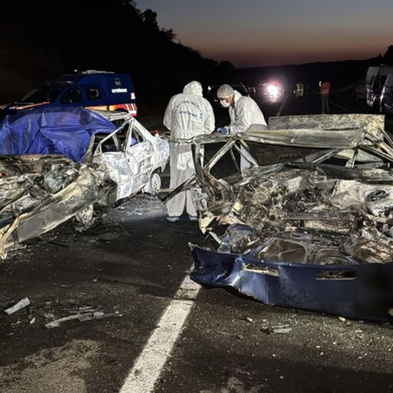 Çarpışmanın ardından iki otomobilde yangın çıktı, haber verilmesi üzerine olay yerine jandarma, polis, sağlık, itfaiye ve AFAD ekipleri sevk edildi.